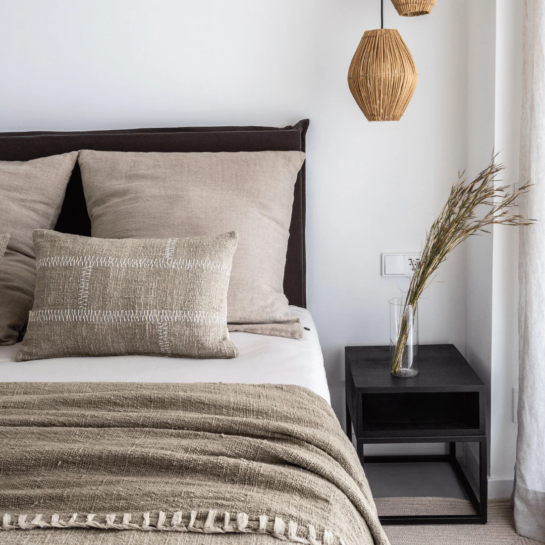Crafted from Sungkai wood with iron framing, this contemporary piece embraces clean Scandinavian lines and a matte black finish. It pairs effortlessly with neutral bedding, textured linen, or soft wood tones — especially our Linen Headboards, available in various colors to complete the look.