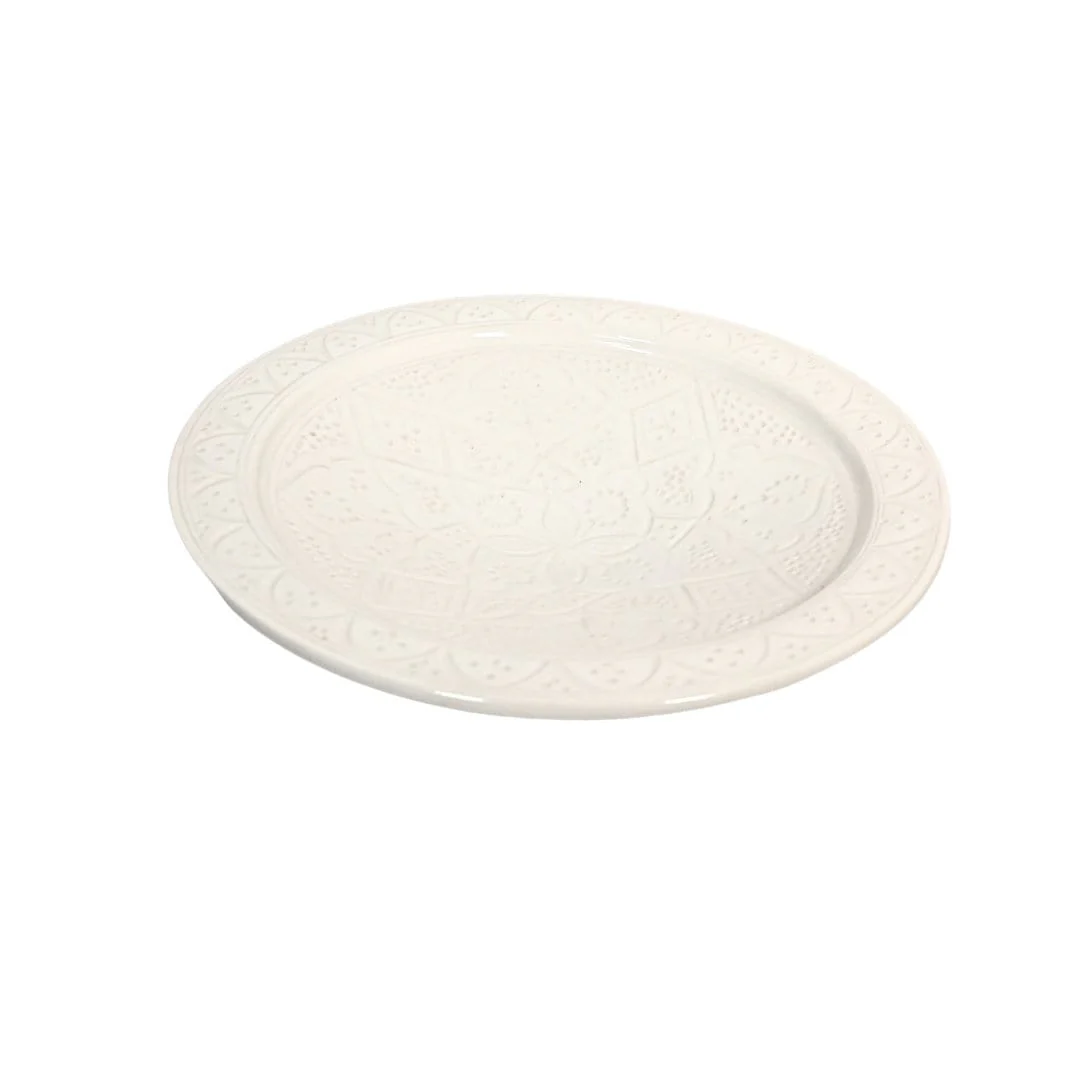 Beautiful white ceramic plate carefully handmade by talented artisans in Morocco. Each piece is unique and providing that special touch to your kitchen or dining space.