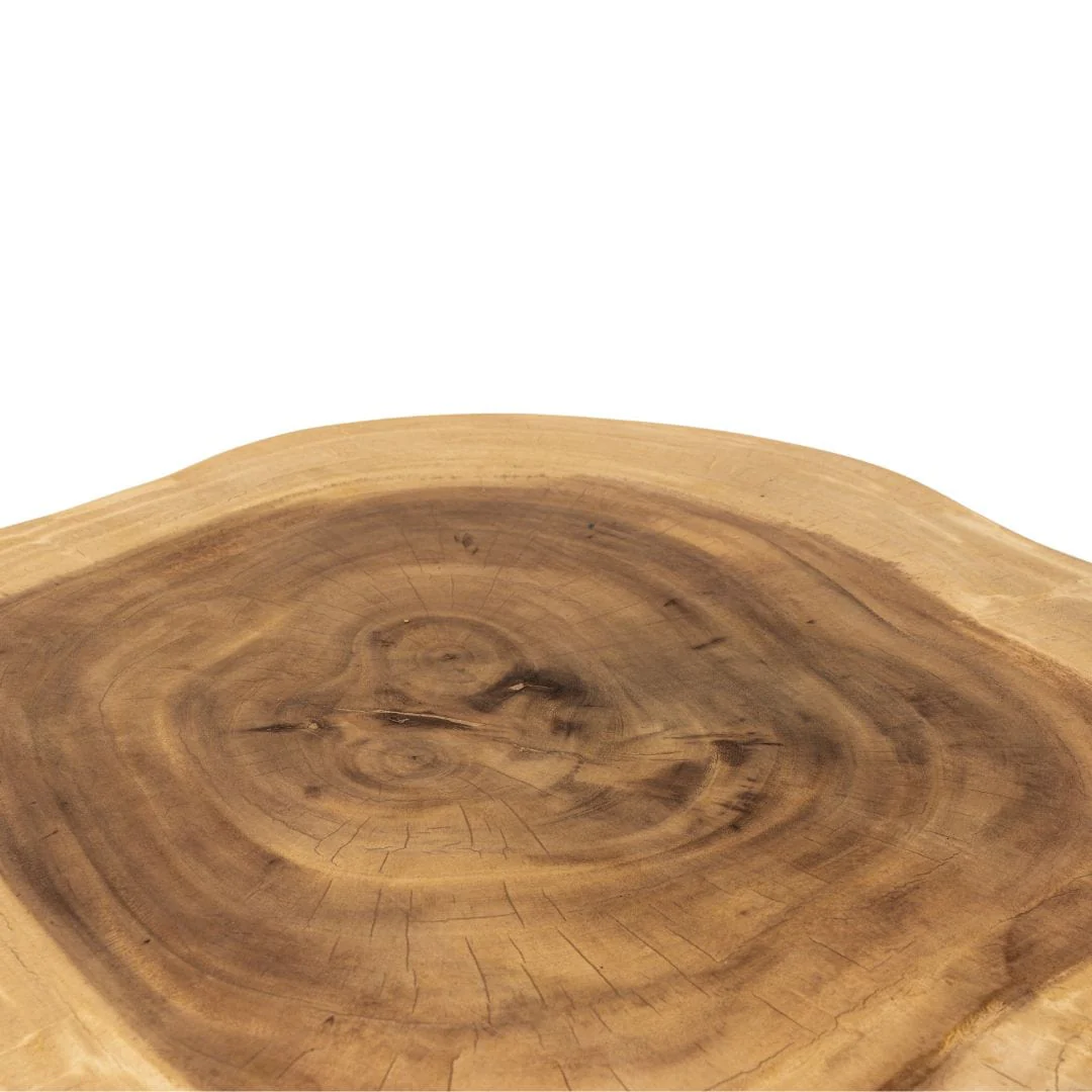 Each piece is unique, showcasing the organic grain and rich tone of the suar wood. The compact size makes it ideal for living rooms, lounges, or cozy reading corners.